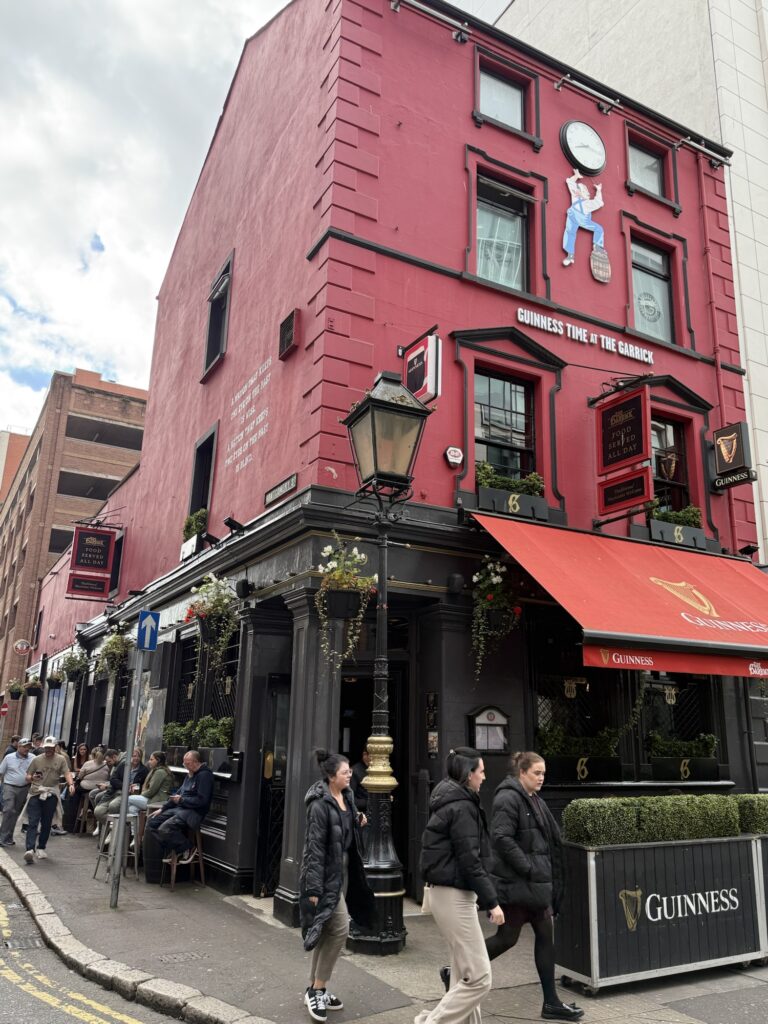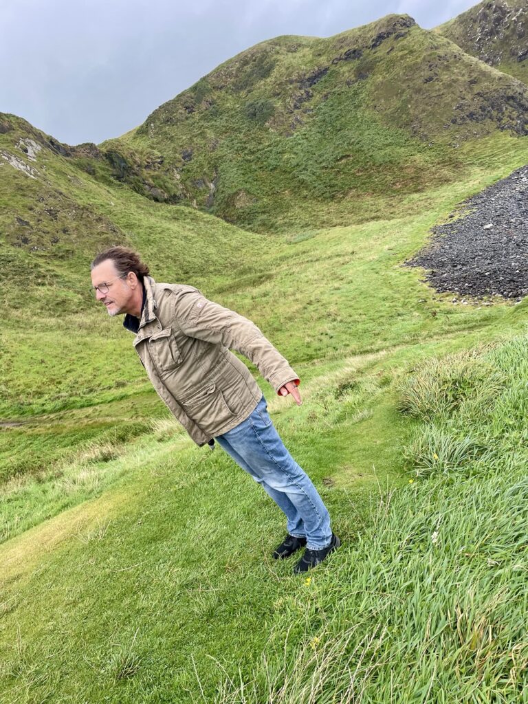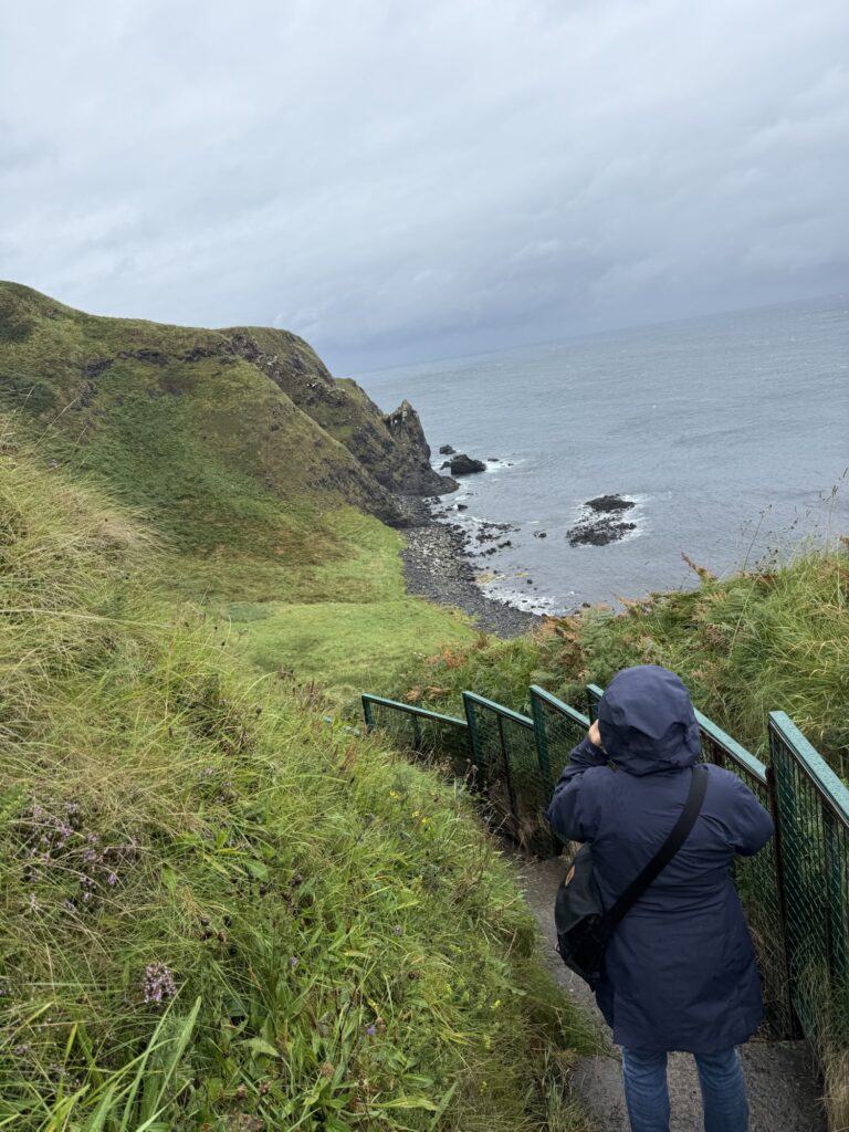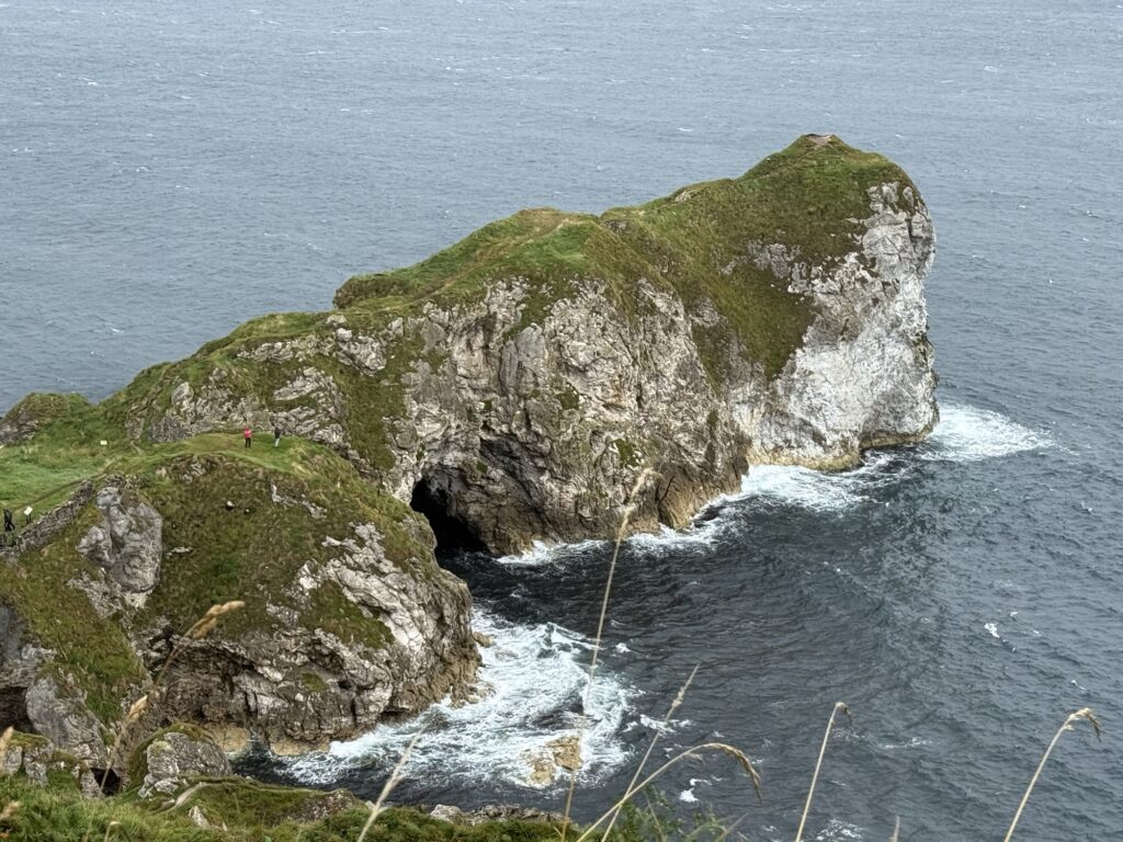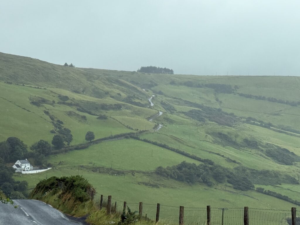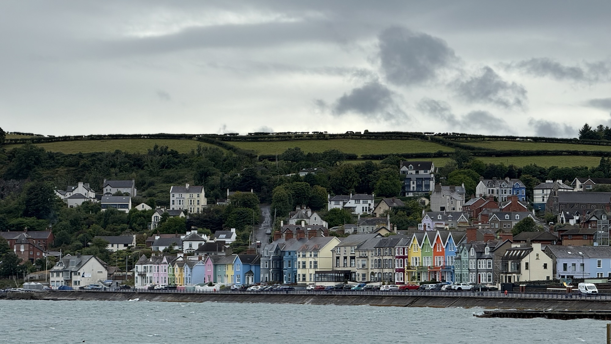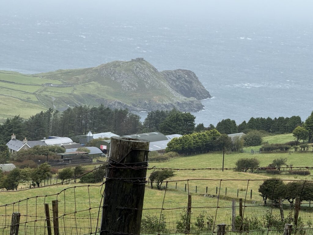 Im Hintergrund leuchtet das satte Grün der irischen Insel. Wegen des extrem britischen Wetters