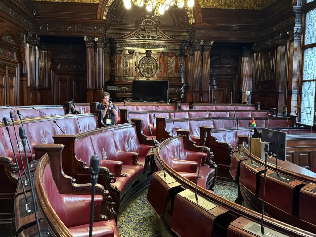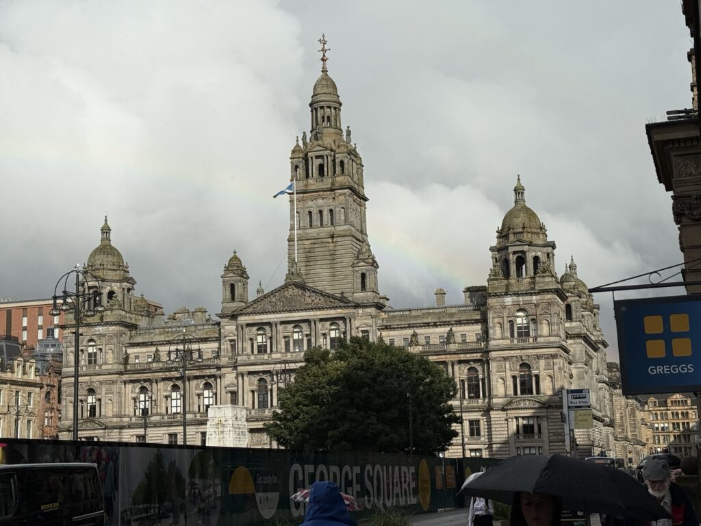 starten wir zu unserer Glasgow Sightseeingtour. Auch wenn wir es nicht glauben und mehrere Extrarunden drehen, finden wir nur wenige Meter neben dem George Square einen Platz für Gaggoo. Unser erstes Ziel ist das Rathaus, City Chambers, inkl. geführter Tour.