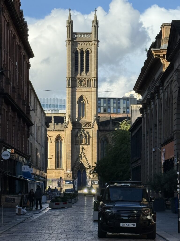 und parken schließlich nur einige Meter weiter auf der anderen Seite vom George Square, um über die Einkaufsstraßen zu bummeln.