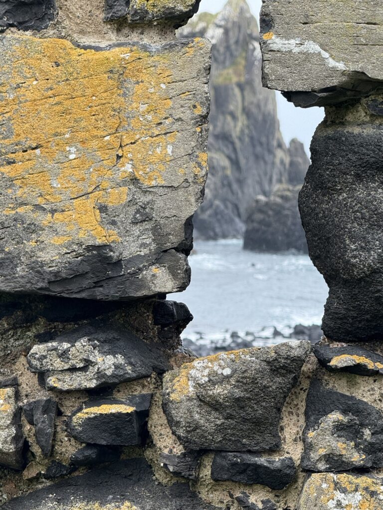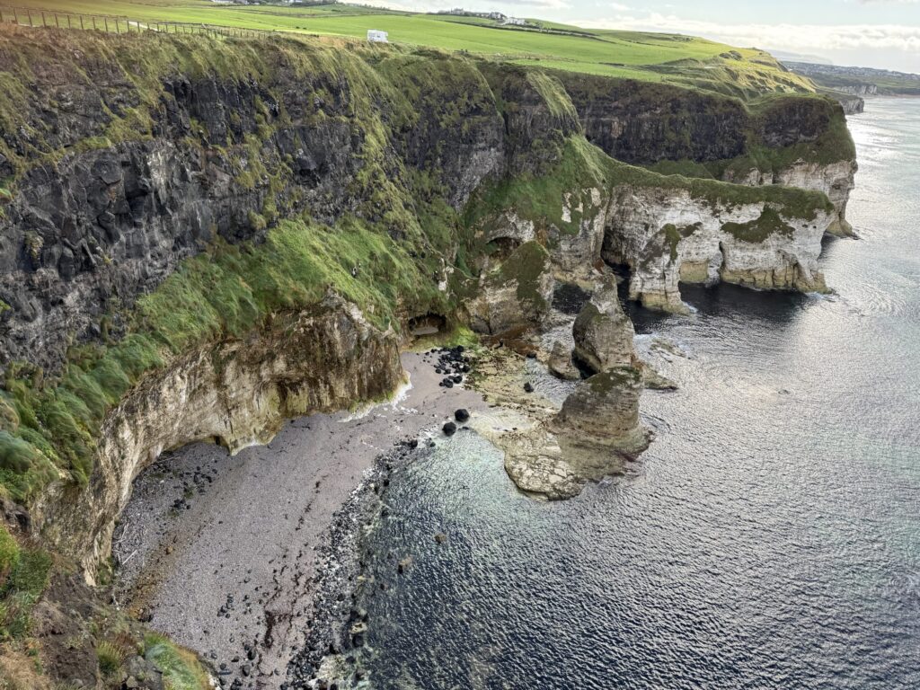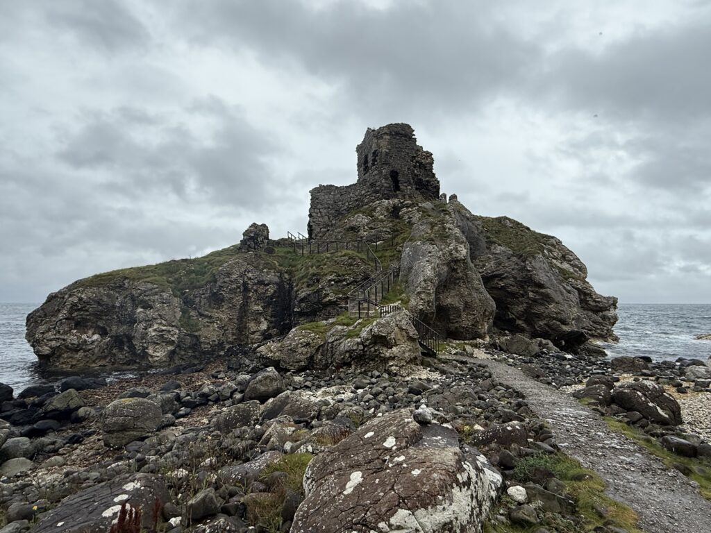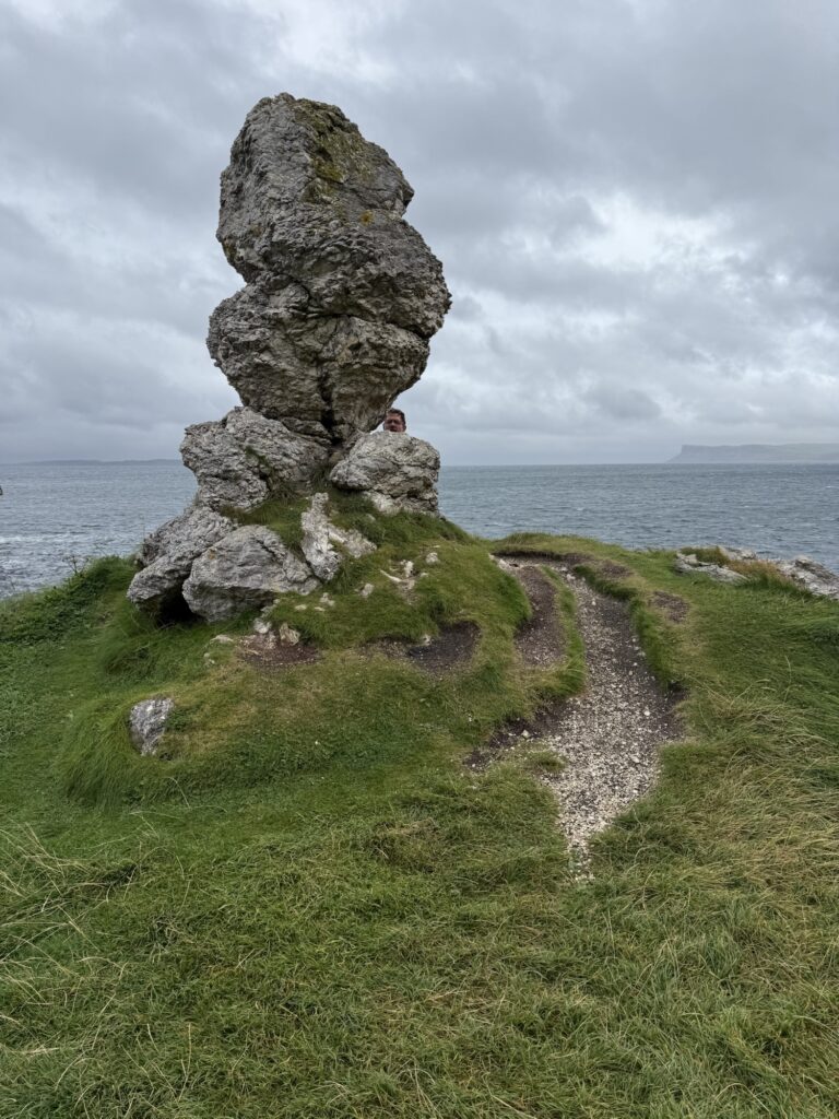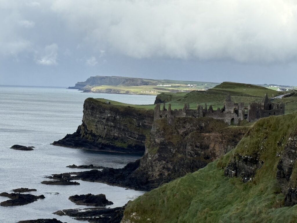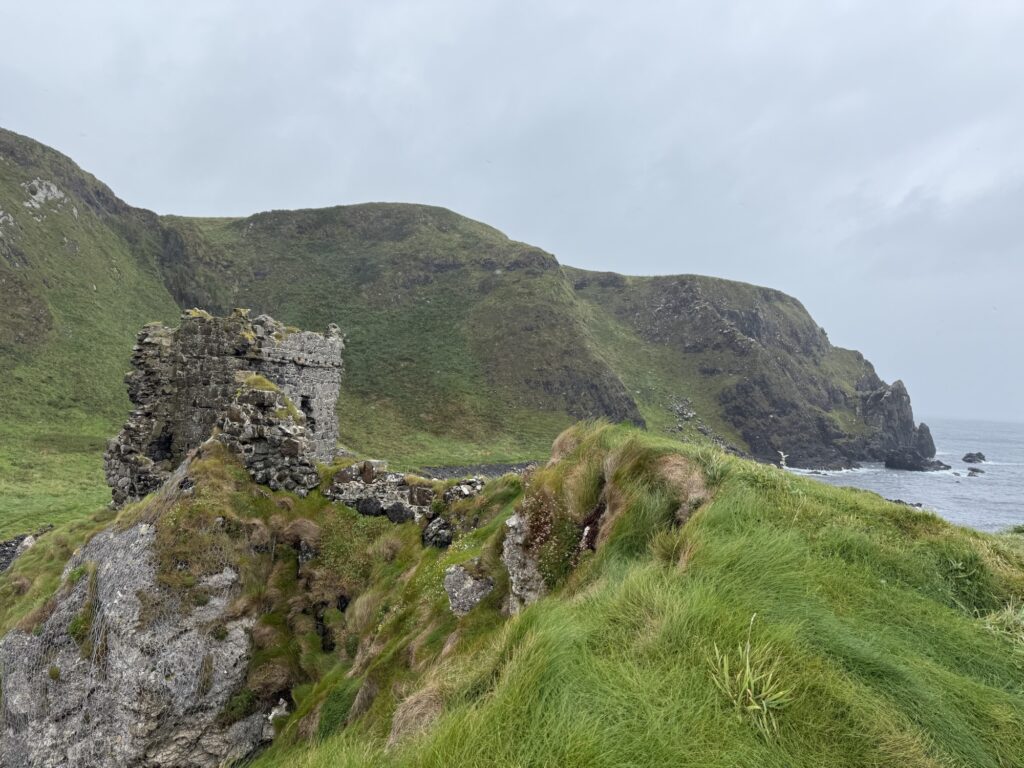 Vom Autostrand in Portsteward fehlt leider ein Foto, dafür konnte der Wind die Schwerkraft am Kinbane Castle aufheben.