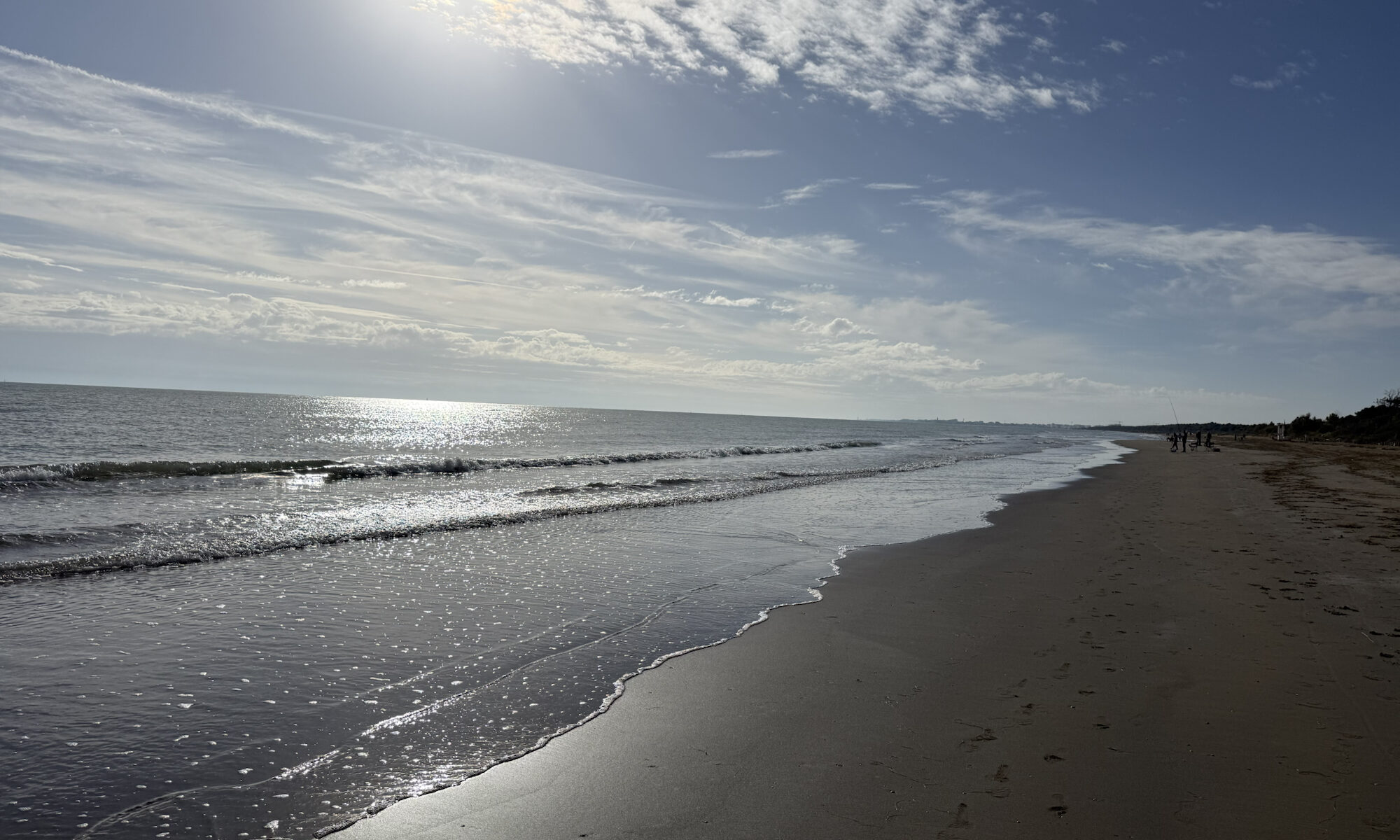 Die Sonne weckt uns schon früh, auch wenn die Wolken am Horizont uns das große Spektakel nehmen. Nach einem gemütlichen Kaffee im Bett starten wir den Tag mit einem Spaziergang, von dem wir eine etwas stinkiger Beute in Form einer knorrigen Schwemmholzwurzel mitbringen.